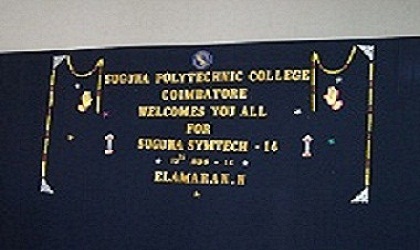 Our college organizes a State Level Technical Symposium namely “SUGUNA SYMTECH” every year on August 17th. This symposium is mainly intended to motivate the students to enrich their knowledge. Participation in this symposium will be a definite benefit for Polytechnic and School Students. Many competitions like Drawing, Eloqition, Rangoli, Quiz for school students and Paper presentation for polytechnic students are conducted.Our Principal Mr.V.Govindarajalu presided over the function. Around 400 students from various schools and polytechnics participated in all the competitions. Chief Guest Mr.N.Elamaran gave an inspiring speech to the participants. Cash Prizes are awarded for the winners in each stream and certificates are awarded to all selected participants.